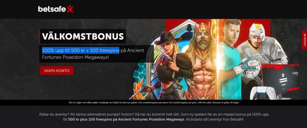 Betsafe 100% upp till 500 kr + 100 freespins på Ancient Fortunes Poseidon Megaways! 18+ | Spela ansvarsfullt | www.stodlinjen.se | Omsättningskrav: 35x | Endast nya spelare | Regler och villkor gäller
