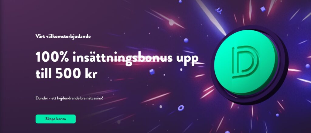 Som en ny spelare hos Dunder casino kan du få en fin bonus på upp till 2000kr. Bonusen är på 100% och gäller för alla spelare från Sverige som inte har tagit emot någon bonus sedan regleringen trädde i kraft den 1 januari 2019. Det här är en riktigt generös bonus som ger dig möjlighet att spela mer och längre på din favoritmaskin eller vid bordsspel. Missa inte chansen att ta del av detta erbjudande och bli en del av Dunders stora spelgemenskap!